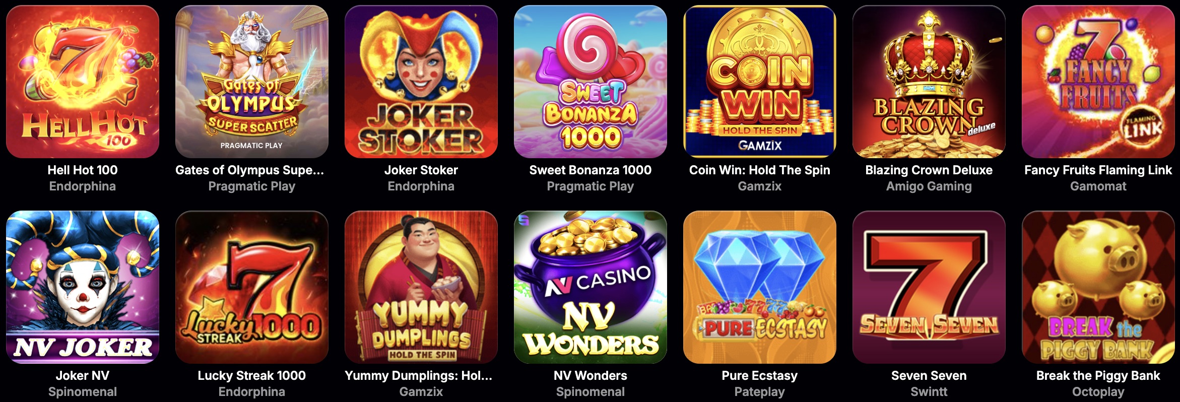 NV, etablerat 2025, är ett online casino som hanterar ett brett utbud av spelare. Plattformen har en enorm spelsamling med över 5 500 titlar, inklusive slots, bordsspel och live-leverantörsalternativ från ledande operatörer som Practical Play och Novomatic. NV erbjuder flexibla betalningsmetoder, inklusive kryptovalutor, samt ett flerstegs välkomstbonus inklusive gratisomsättningar. Denna recension kommer att täcka de viktigaste aspekterna av NV Casino för att hjälpa dig att avgöra om det är rätt val för dig.